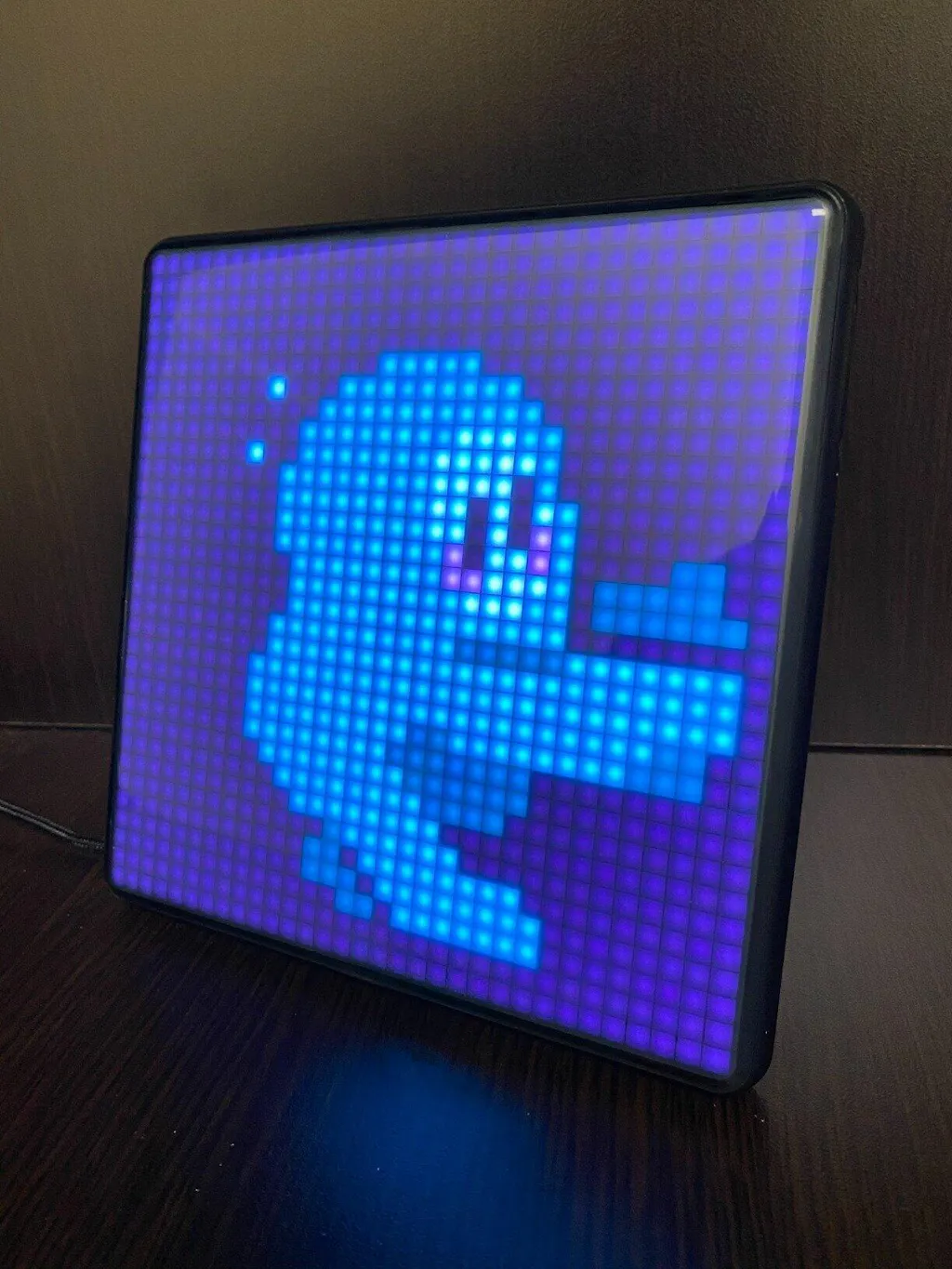 The APEX Pixel Display measures 20 × 20 cm, making it a compact and stylish addition to your desk, shelf, or wall setup.